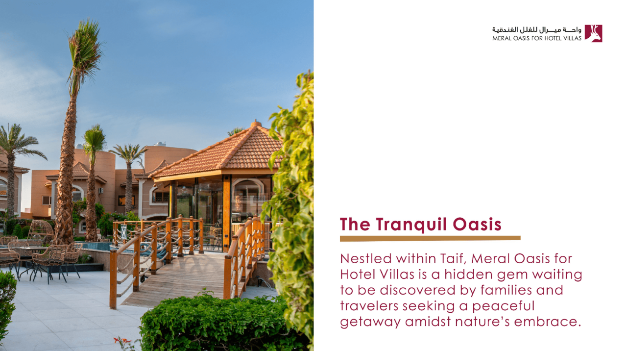 Nestled within Taif, Meral Oasis for Hotel Villas is a hidden gem waiting to be discovered by families seeking a peaceful getaway amidst nature's embrace.