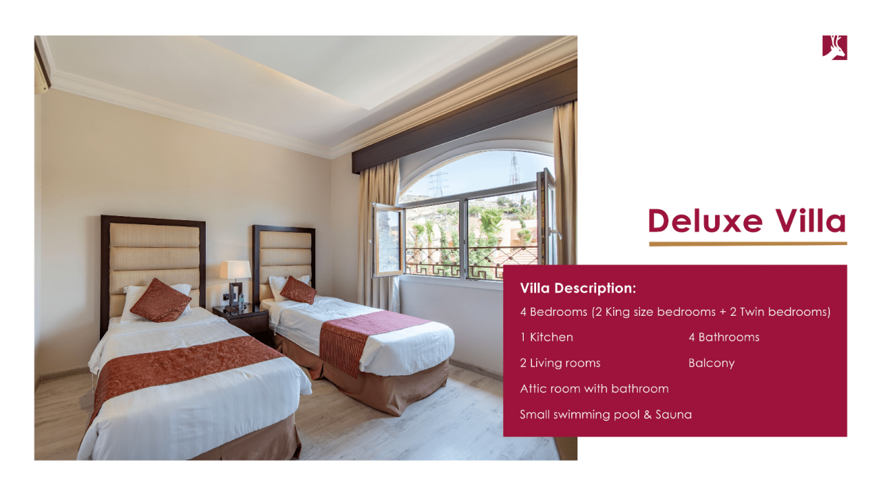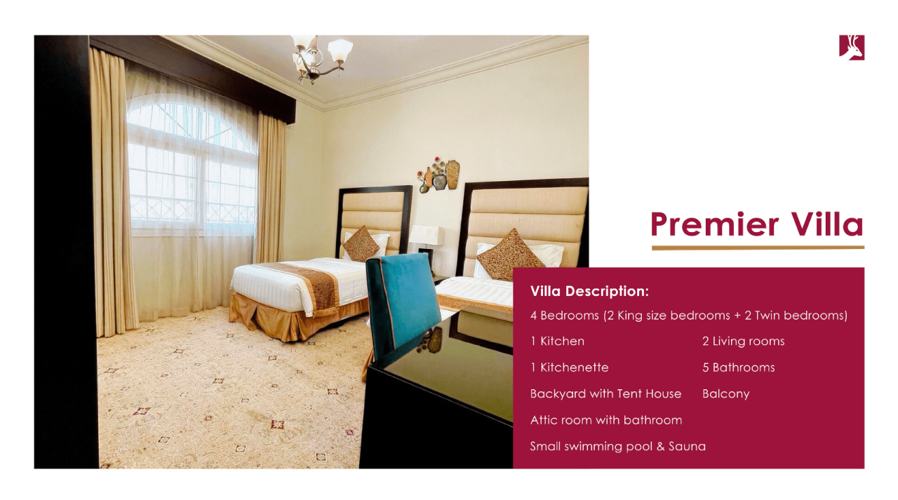 The resort's 33 exquisite, contemporary, and large villas are fully outfitted, a n d carefully built for your comfort, and in addition to the privacy that is granted during your stay. Each villa has a private swimming pool and sauna cabinet.