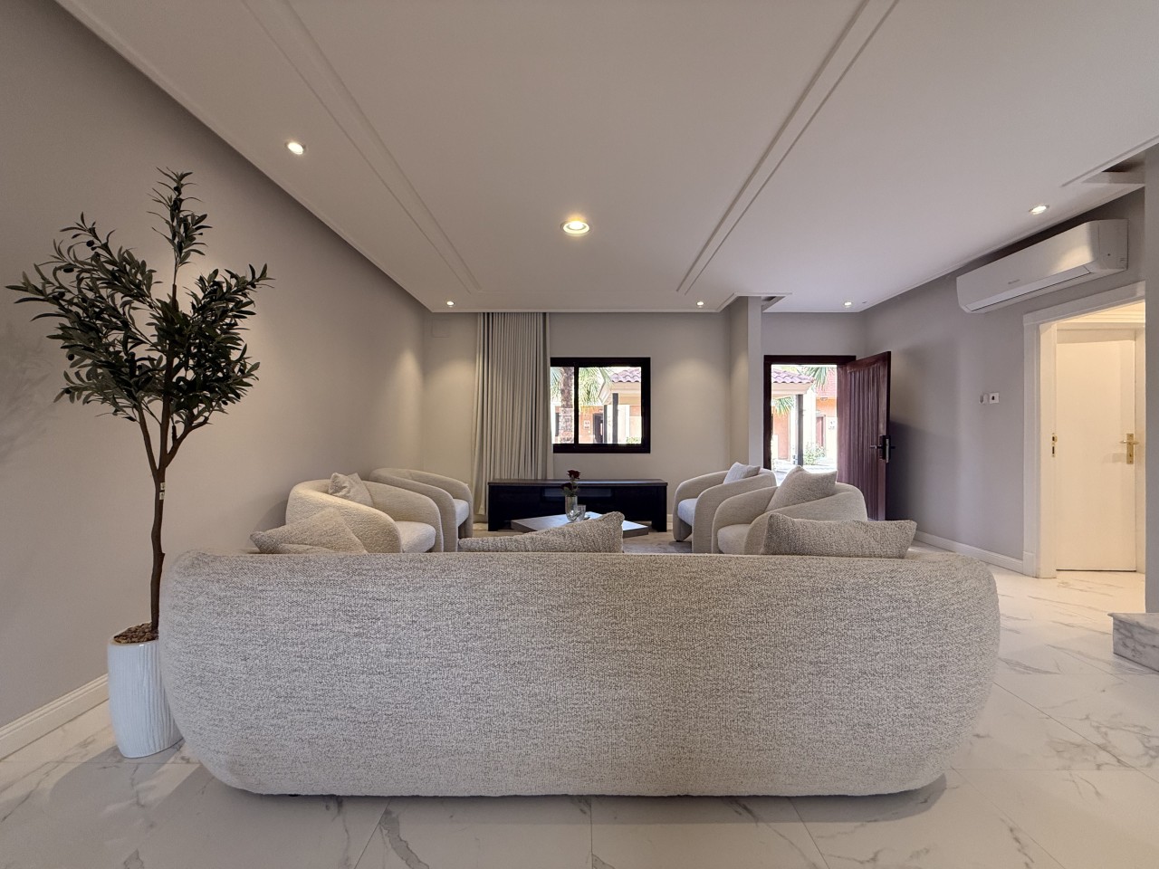 Each unit is designed with generous natural lighting, high-quality finishes, and the option of contemporary furnishings. Villas include complimentary internet service, 24/7 maintenance support, a smart-home operating system, advanced cooling and air-purification systems, fully fitted kitchens with essential appliances, an isolated air-extraction system, modern gypsum ceilings with concealed lighting, ceramic and porcelain flooring, sound-insulated windows, and multiple convenient access points.